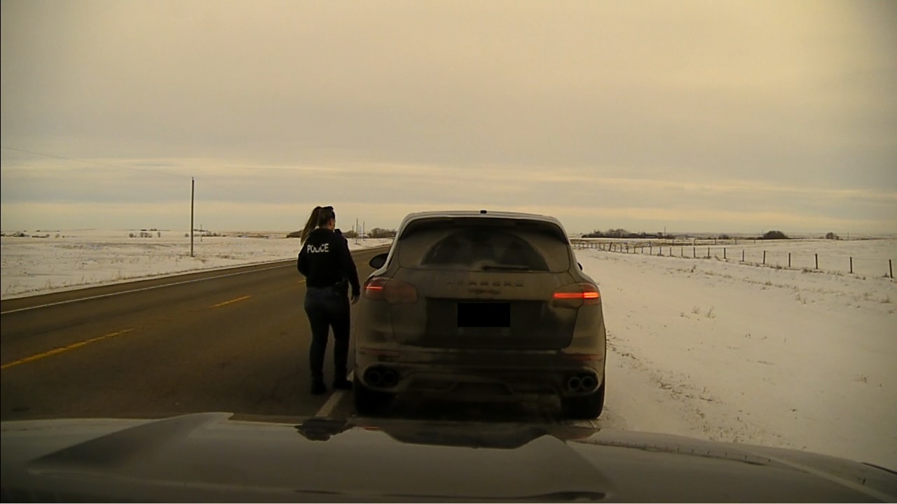 The driver was found to be bound by a release condition from an unrelated matter, enabling a vehicle search, a Strathmore RCMP media release said.